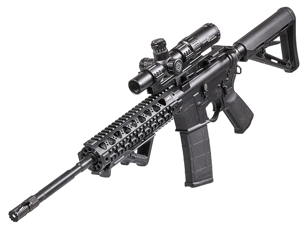 Sightmark Core TX riflescopes use fully multi-coated optics to provide optimal light transmission in a variety of conditions. Etched glass reticles, in red or green, are illuminated to deliver optimal shot placement and are durable to withstand years of shooting.  The Core TX riflescopes feature exposed, lockable turrets which help maintain a consistent zero. Turrets are quick and easy to adjust to compensate for bullet drop and windage on the fly. The Core TX 1-4x24DCR is housed in a durable 30mm tube, built from aircraft grade aluminum. This scope features a duplex BDC reticle and is calibrated for .223 and .308 ammo.